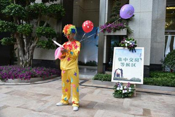 等候區(qū)大門外小丑為小業(yè)主們編織著可愛的氣球,冷餐區(qū)擺放著美麗又可口的糕點(diǎn),等待業(yè)主們回家享用。