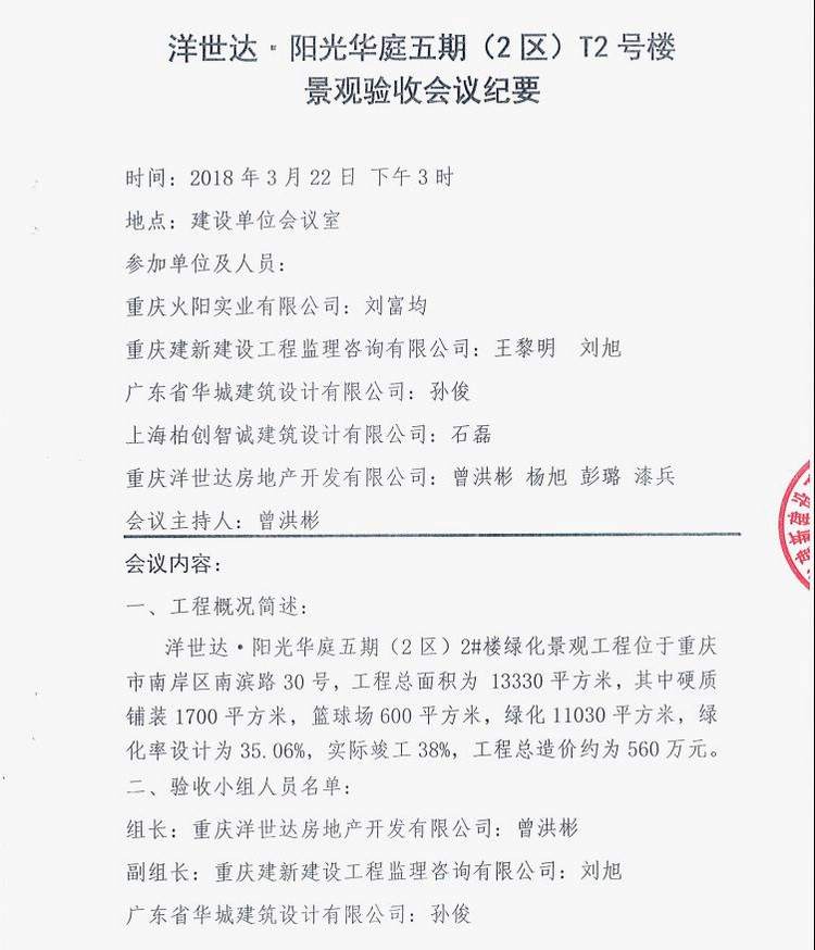 洋世達.陽光華庭五期(2區)T2號樓景觀驗收公示