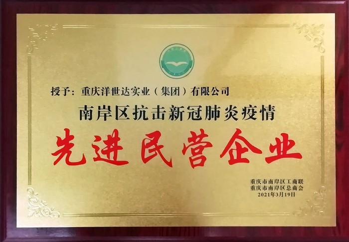 眾志成城,共克時艱,鑒于集團公司在抗擊疫情中的貢獻,重慶市房地產協會授予重慶洋世達集團抗擊新冠肺炎疫情“先進會員稱號”!
