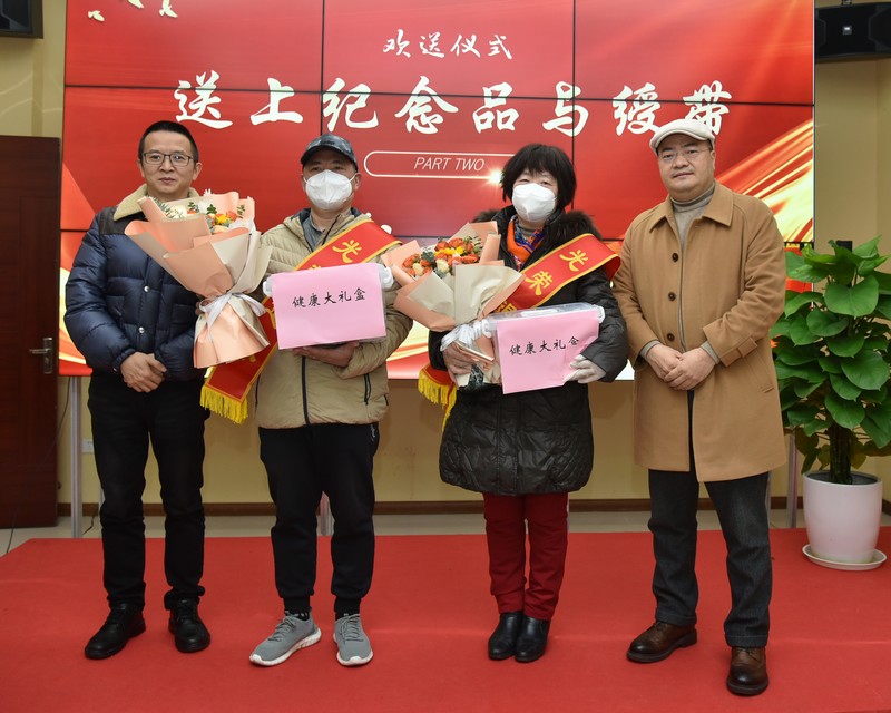 歡送會上,大家首先一起回顧了二位同志的工作經歷。羅興容、漆兵兩位同志是開發公司的老員工,分別為公司服務22年和11年。她(他)們用多年來的勤奮工作、認真履職,詮釋了洋世達人恪盡職守的敬業精神和工匠精神。他們是洋世達房產公司事業發展的親歷者與實踐者,更是助推公司發展壯大的追夢人……張志興總裁、張兵副總裁為兩位同志佩戴“光榮退休”綬帶、送上“健康禮盒”及鮮花。