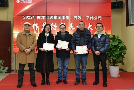 退休歡送會后,集團本部、開發公司、平偉公司召開了2022年度先進部門、優秀員工表彰會議。