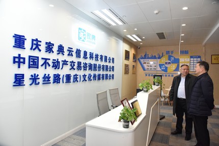 隨后,歐副主任一行驅(qū)車來(lái)到重慶家典云信息科技有限公司,參觀了解了家典不動(dòng)產(chǎn)交易平臺(tái)及線上智慧社區(qū)的運(yùn)營(yíng)和服務(wù)情況。
