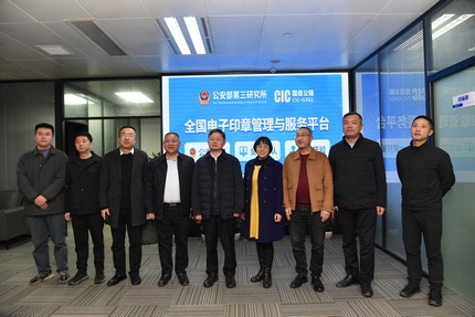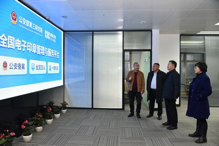 最后,調(diào)研組一行來(lái)到重慶國(guó)信公鏈印章有限公司走訪。作為公安部第三研究所及CIC國(guó)信公鏈研究院全國(guó)電子印章管理與服務(wù)平臺(tái)重慶市平臺(tái),公司為重慶市內(nèi)政務(wù)部門、企事業(yè)單位、社會(huì)組織及個(gè)人用戶提供電子印章權(quán)威備案、簽章、查詢、核驗(yàn)等公共服務(wù),搭建并實(shí)現(xiàn)了“公安備案、全國(guó)互認(rèn)、一鍵核驗(yàn)”的電子印章應(yīng)用服務(wù)體系,為減輕企業(yè)運(yùn)營(yíng)成本、打破電子印章區(qū)域應(yīng)用壁壘、助推數(shù)字經(jīng)濟(jì)產(chǎn)業(yè)化發(fā)展做出了積極貢獻(xiàn)。