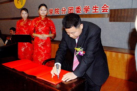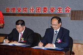 管理學(xué)院領(lǐng)導(dǎo)為董事長楊勇頒發(fā)了“重慶工商大學(xué)管理學(xué)院大學(xué)生創(chuàng)業(yè)導(dǎo)師”聘書。董事長楊勇與管理學(xué)院簽署了“創(chuàng)業(yè)實(shí)習(xí)共建基地協(xié)議書”,并為本次論壇題寫了“超越夢想,成就自我”的題詞。