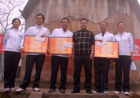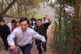 上午9時,大家來到江南體育館,整裝待發,躍躍欲試。9點30分,隨著集團公司領導張副總一聲令下,參賽隊員齊向山頂奔去。半個小時左右,第一名參賽隊員成功登頂,書寫了南岸區民間登山成績的新記錄。全體參賽隊員充分發揚團隊精神,互相鼓勵,互相幫助,于10點30分全部攀上山頂。隨后,大家在文峰塔旁舉行了熱烈的頒獎儀式,物管公司代表隊、驕陽綠陽聯合代表隊、凱誼公司代表隊分別獲得一、二、三名。