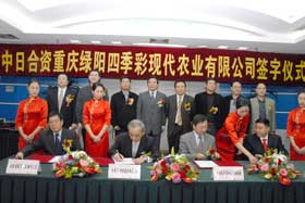 本次簽約儀式由南岸區(qū)人民政府副區(qū)長唐昕主持,共青團(tuán)中央國際項(xiàng)目合作中心、重慶市農(nóng)業(yè)綜合開發(fā)辦公室、市農(nóng)工委、市農(nóng)業(yè)局、共青團(tuán)重慶市委等單位的相關(guān)領(lǐng)導(dǎo),以及中共南岸區(qū)委、區(qū)人大、區(qū)政府、區(qū)政協(xié)主要領(lǐng)導(dǎo)及相關(guān)部門領(lǐng)導(dǎo),洋世達(dá)集團(tuán)公司全體領(lǐng)導(dǎo)參加儀式,共同見證了一個(gè)由中日合資組建的現(xiàn)代化農(nóng)業(yè)企業(yè)的誕生。